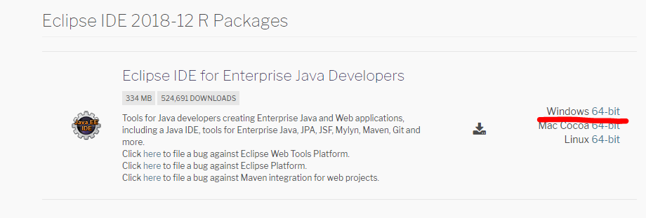 자신의 운영체제에 맞는 이클립스를 선택해서 다운로드 하면 됩니다.