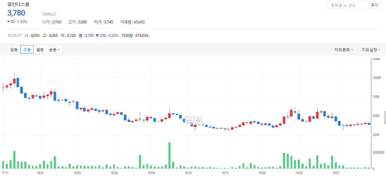 2019년 9월 27일 : 매수가 3,778원, 현재가 3,780원, 비중 10%