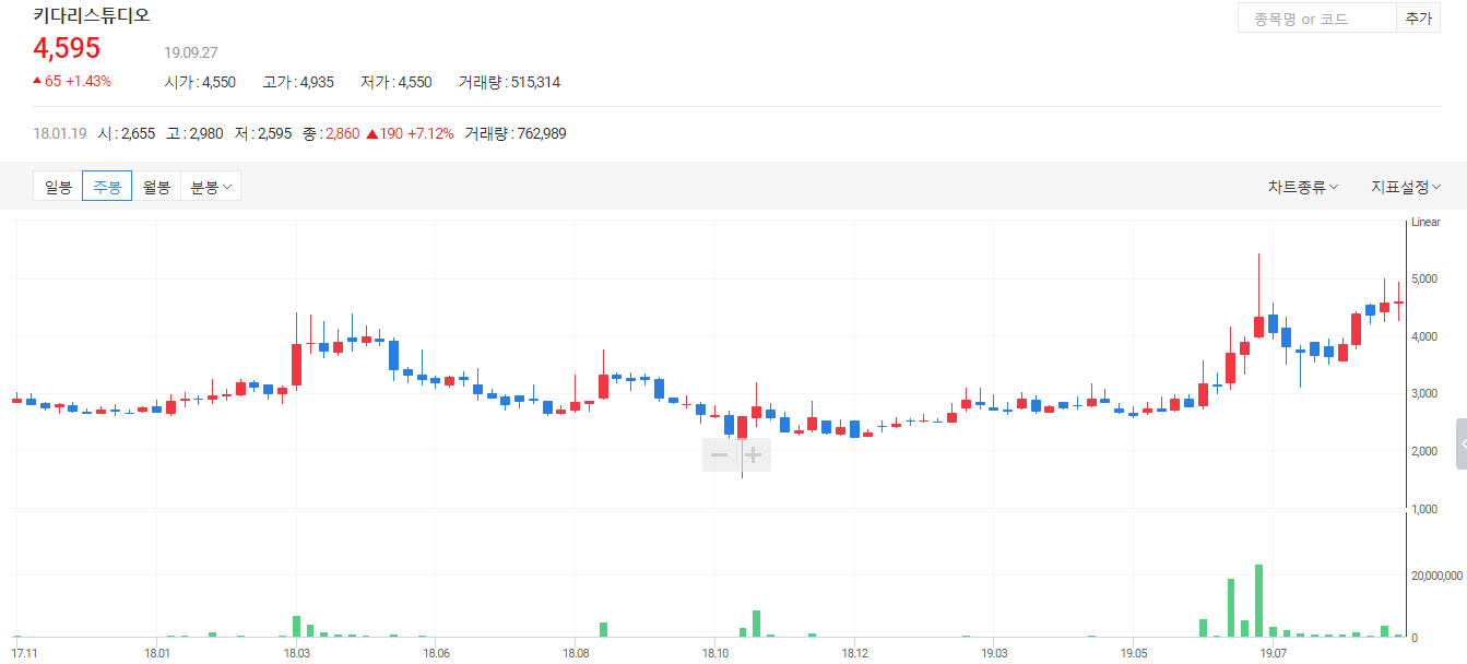 2019년 9월 27일 : 매수가 3,900원, 현재가 4,595원, 비중 35%