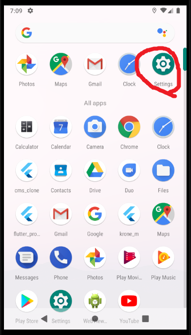 설정 앱을 클릭하여 설정화면으로 이동한다.
