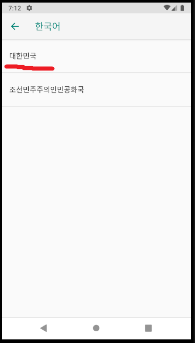 한국어에는 두개가 보이는데 당연히 대한민국을 선택한다.