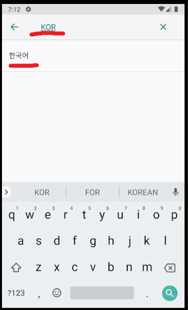 검색창에 kor을 입력하면 한국어가 검색된다.