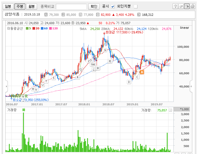 2016년~2018년까지 엄청난 상승이 있었던 것은 붉닭 볶음면 효과때문임