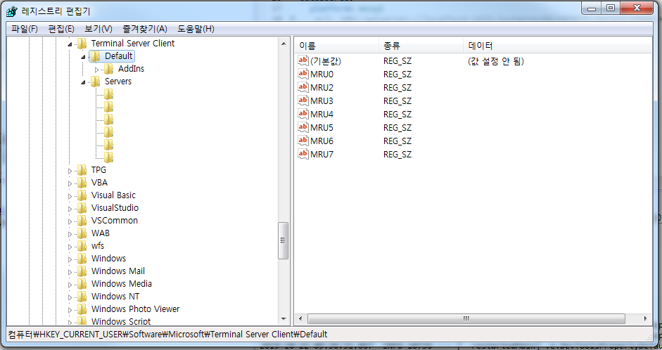 HKEY_CURRENT_USER\Software\Microsoft\Terminal Server Client\Servers 항목을 열면