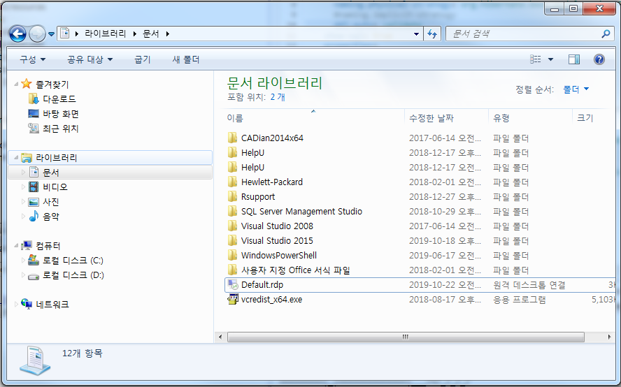 탐색기를 열어서 라이브러리의 문서로 이동합니다.