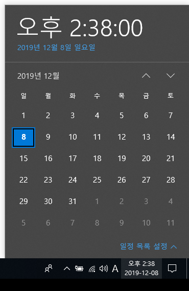 윈도우 10에서 시간을 클릭해도 달력만 나오고 시간 변경하는 버튼이 없다.