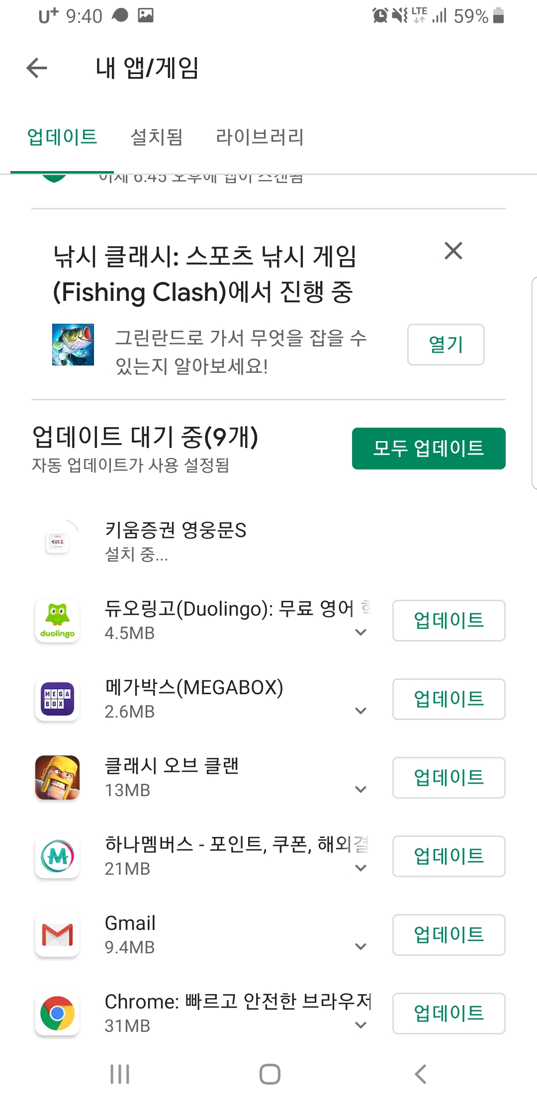 Play 스토어의 내 앱/ 게임에 가보니